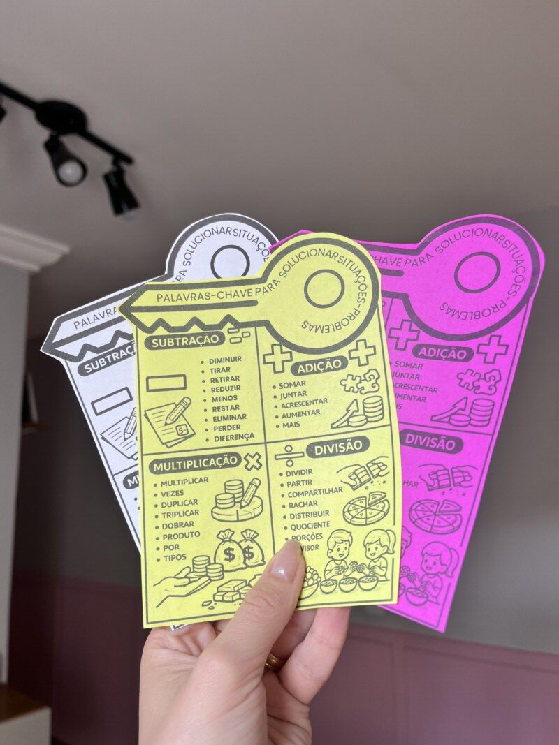 Esse material é um apoio visual para trabalhar problemas matemáticos com as quatro operações. Pode ser usado na explicação, como cartaz na sala ou apoio na resolução de atividades. Ajuda os alunos a identificarem palavras-chave em situações-problema.
